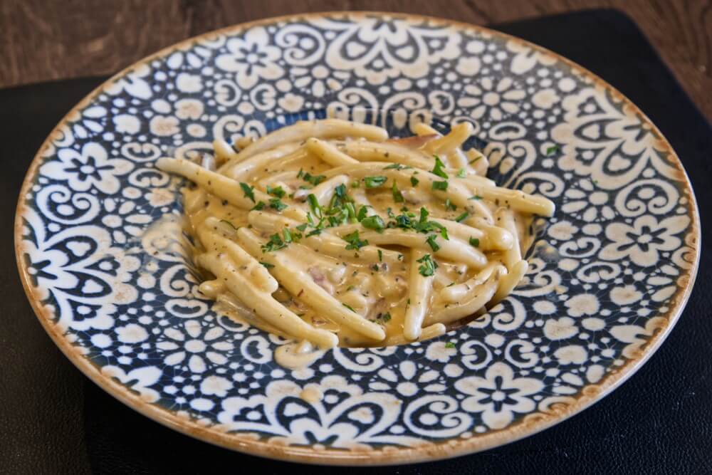 Ponedjeljkom miriši gulaš ili odlične, malo pikantne krvavice (koje rade sami) poslužene s krpicama sa zeljem. Novost u ponudi gableca su domaći pljukanci u umaku od pršuta s kaduljom (mijesi ih gospođa Zdenka koja u Mitnici radi punih 17 godina).