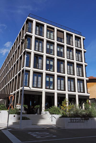 Na mjestu gdje je nekad stajala tvrtka Trgovačko Opatija, danas se uzdiže jedan od najsuvremenijih hotela u regiji – Keight Hotel Opatija, dio globalne Curio Collection by Hilton. Arhitektonski studio 3LHD oblikovao je ovaj hotel kao moderno utočište koje svojim izgledom i stilom odgovara bogatoj opatijskoj baštini, ali donosi udobnost i ekskluzivnost suvremenom putniku. Posebnost ovog hotela je spoj minimalističkog dizajna i prirodnih boja koje asociraju na more i nebo, stvarajući tako jedinstveni ambijent sigurnosti i topline. Hotel je pravi odgovor na želje gostiju koji žele istražiti Opatiju, ali i uživati u luksuzu i opuštajućim sadržajima u njezinom strogom centru. Ime hotela “Keight” odaje počast Katarini Hauptfeld, vizionarki koja je svoj život posvetila promociji Jadrana i Hrvatske u svijetu. Njezin duhovni broj simbolizira ne samo osam, već i beskonačnost koja se kroz različite detalje provlači kroz hotel. Katarina je pokrenula Katarina Line, jednu od najuspješnijih malih pomorskih kompanija za otočka krstarenja, čime je pokazala da je sve moguće uz volju i trud.