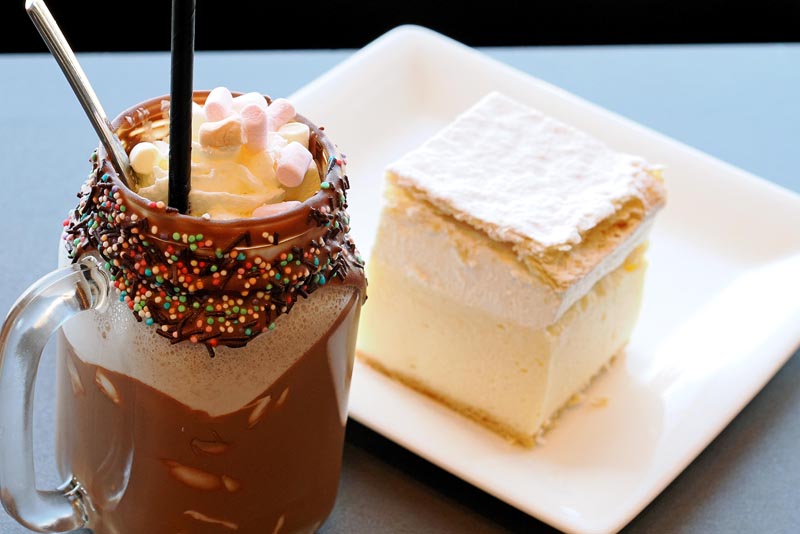 Gastronomska ponuda uključuje tradicionalne slovenske okuse, zimske zalogaje i nezaobilaznu kraljicu Bleda – oznatu kremšnitu.