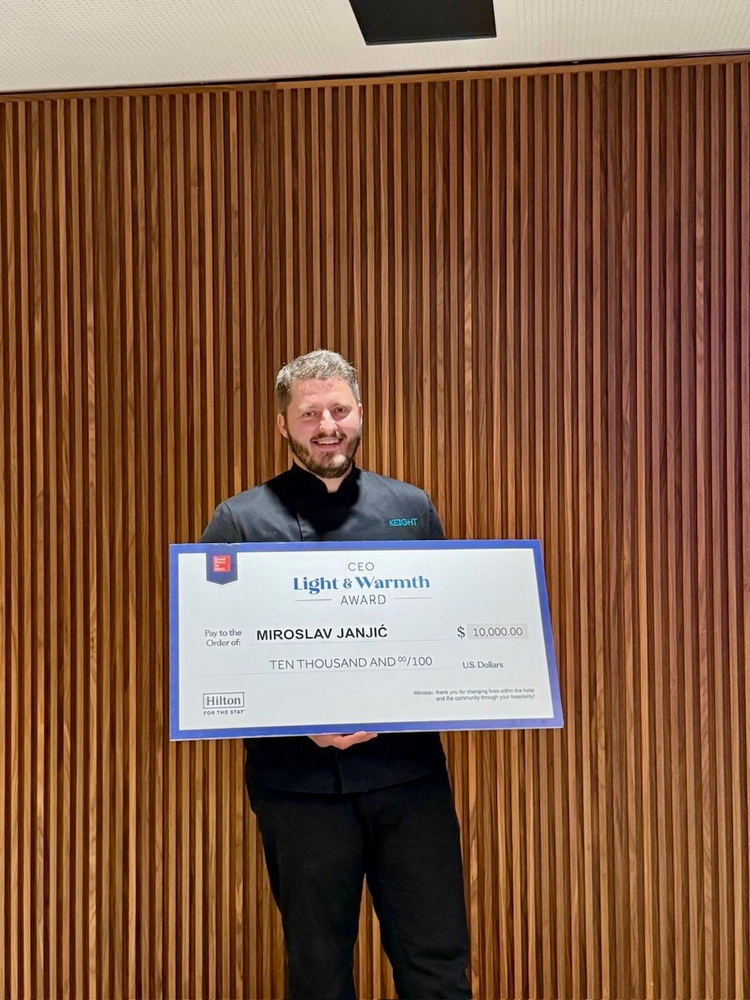 Chef Miroslav Janjić, Executive Chef u Keight Hotelu Opatija (Curio Collection by Hilton), osvojio je najprestižnije priznanje unutar Hiltonove globalne mreže – 2025 CEO Light & Warmth Award. Među više od 800 nominacija, Miroslav je odabran kao dobitnik Hiltonovog najvišeg priznanja, koje slavi iznimne pojedince koji svakodnevno utjelovljuju toplinu, gostoprimstvo i izvrsnost.
