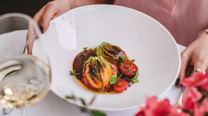 Započnite s tartarom od usoljene losos pastrve — svježim, vibrantnim i punim karaktera, s citrusnim aiolijem i lagano dimljenim vrhnjem koji zaokružuju svaki zalogaj. Ako ste za morske okuse, kremasta rakovica s jabukom i mladim špinatom donosi neočekivano dobar balans, dok će vas vegetarijanske opcije poput confitirane rajčice i punjenog cvijeta tikvice osvojiti svojom jednostavnom, ali moćnom kombinacijom okusa.